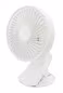 Wiederaufladbarar Tischventilator, mit Klemme und LED-Beleuchtung.
