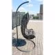 Hängesessel mit Gestell und Kissen.