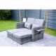 Bequeme Soft-Reißverschlusskissen, seitliche Klappablagen runden diese bequeme Lounge für zwei