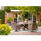 Wunderschöne, massive Tischplatte aus recyceltem Teakholz mit Ø 150 cm. In Kombination mit dem formschönen X-Gestell ist der Riva ein Anblick der seinesgleichen sucht.