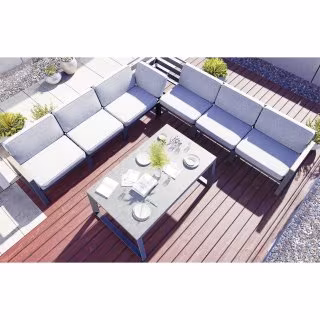 Die „Wilbury“ Modular-Lounge besticht mit Ihrem markanten Aluminiumprofil und Armlehnen aus FSC-Teakholz. Das Set verblüfft mit seinem leichten wetterfestem Aluminiumgestell und seiner hochstabilen Verarbeitung.