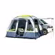 Freistehendes Busvorzelt. 4 große, blickdicht verschließbare Panoramafenster bringen viel Licht ins Innere des Zeltes. Besonderen Komfort und Schutz bietet der fest eingenähte Zeltboden. Verbindungsmöglichkeiten zum Fahrzeug: mit Keder/mit Schleusenstab/mit Klettband an der Reling.