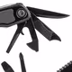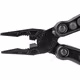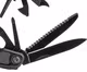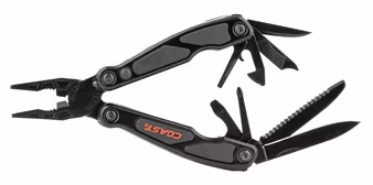 LED Licht, federbelasteter Zangengriff mit Drahtschneider, Messer, Sägeblatt, Kreuz- und Schlitzschraubendreher, Flaschen öffner, Abisolierzange, Ahle, Feile mit Nagelpickel, Dosenöffner, Schlüsselring.