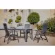 Für lebensnahen Komfort sorgt dabei unter anderem die strapazier fähige und eine stets entspannende ergonomische Sitzhaltung gewährende Textilene-Bespannung der aus Aluminium gefertigten Stühle. Sie sind zudem platzsparend klapp- bzw. stapelbar. Gestell: eisengrau / Bezug: anthrazit