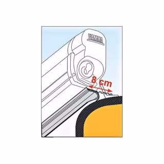 Die Befestigung der Schleuse erfolgt am Zelt über einen Reißverschluss und am Fahrzeug über einen Keder (4 m u. 6 mm Keder sind eingenäht), wahlweise kann ein Schleusenstab (optional) zum Einlegen in die Regenrinne des Fahrzeugs genutzt oder mittels Abspannleinen die Schleuse über das Fahrzeug abgespannt werden.
